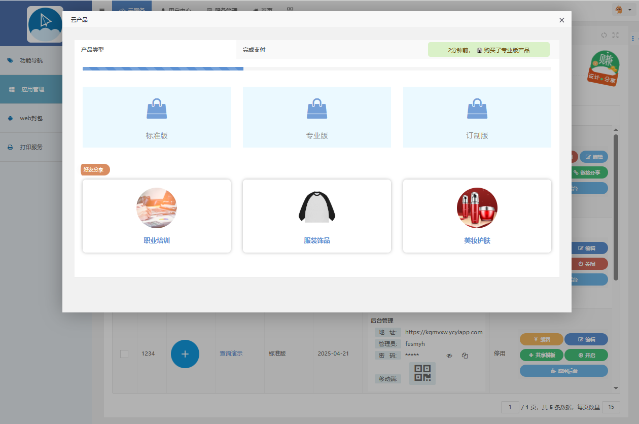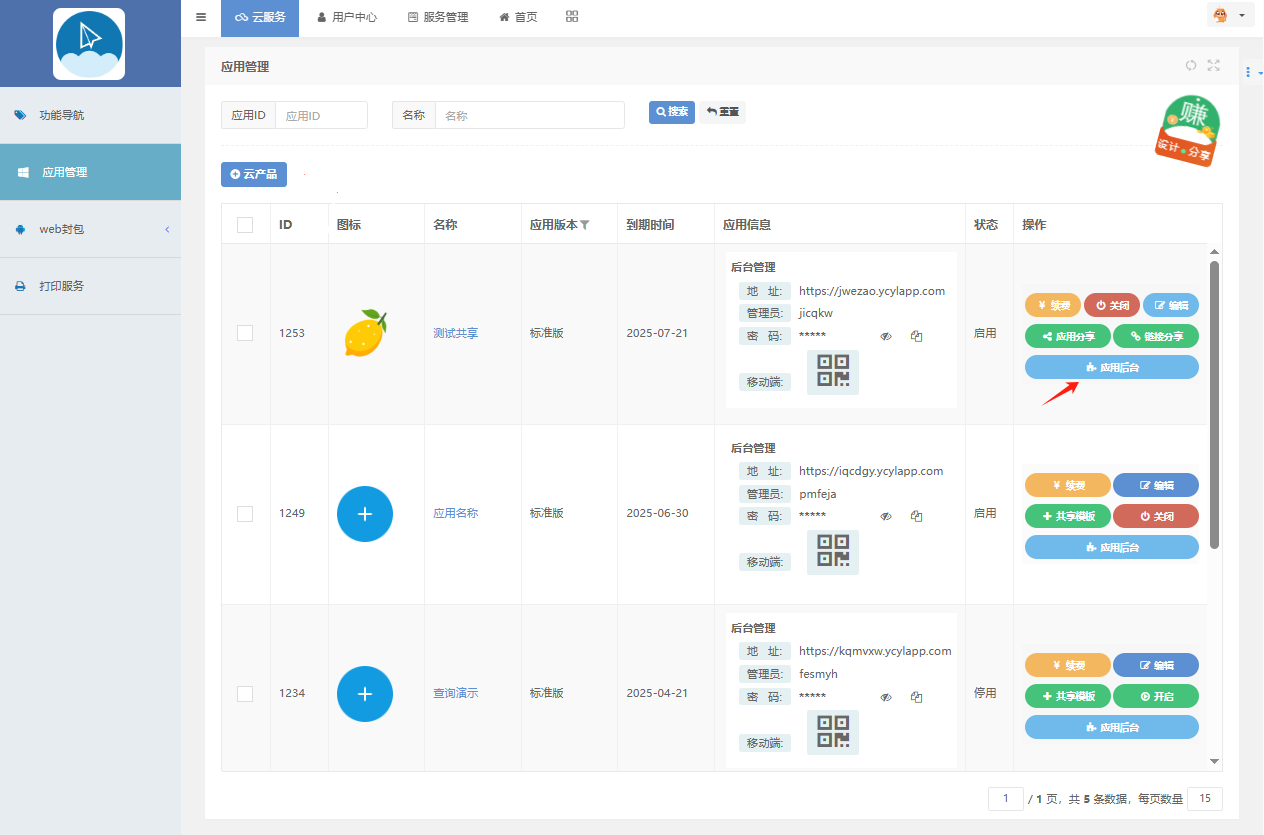 三、 进入应用后台
