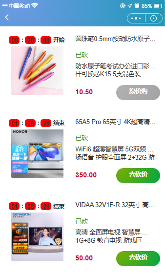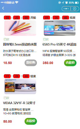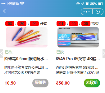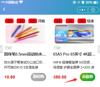 注:需要使用"砍价详情"组件